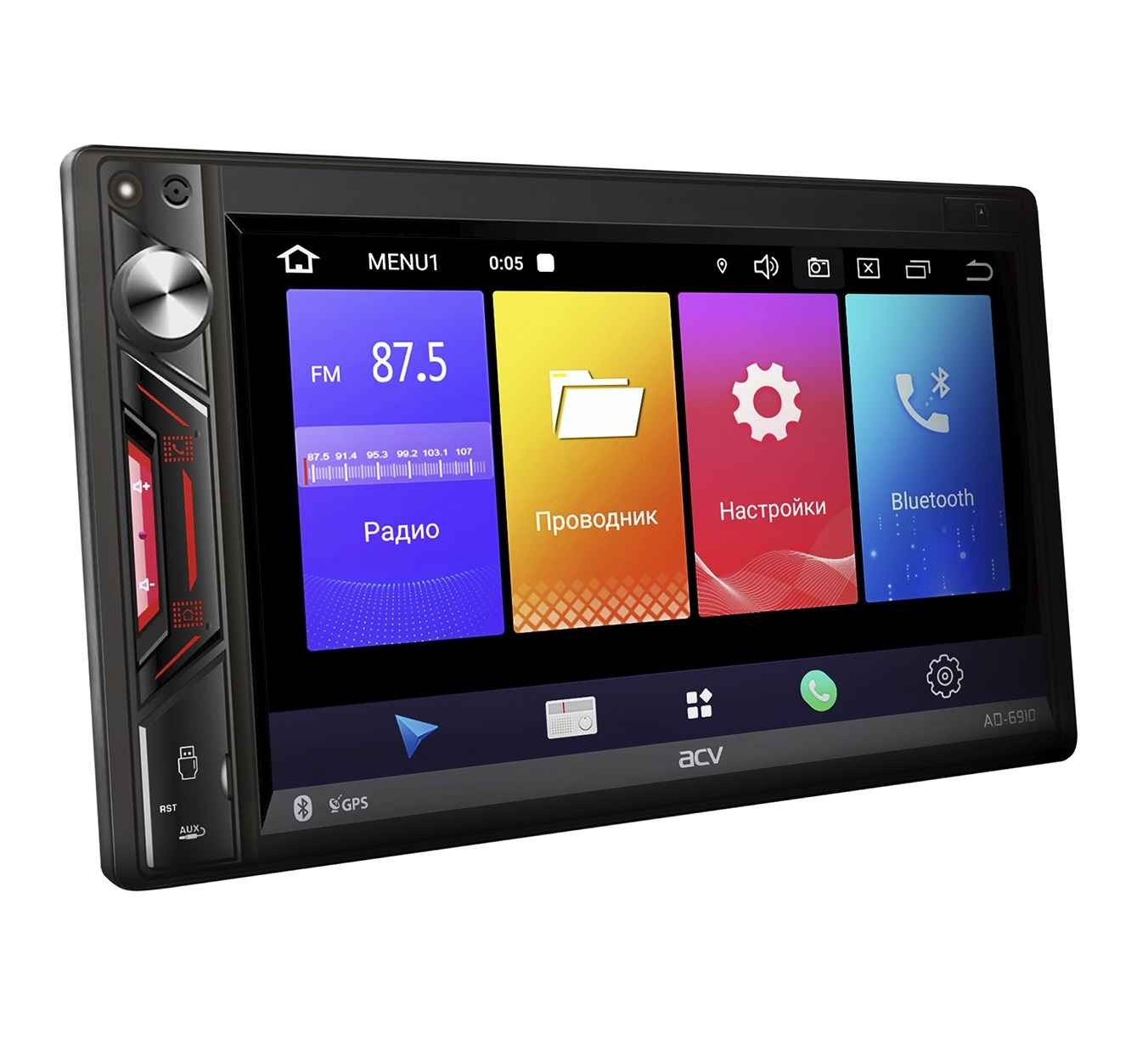 Модель оснащена новым мощным четырехъядерным процессором на ОС Android 9.0. Оригинальная лицевая панель – эксклюзив бренда ACV. Ультратонкий корпус с универсальным креплением, в комплекте идет рамка с монтажным размером 172х96 мм. Емкостный дисплей высокой четкости имеет разрешение 1024х600 пикселей, а семицветная подсветка позволит выбрать лучший вариант для салона любого автомобиля.