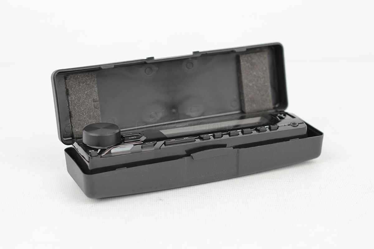 Автомобильная магнитола 1 DIN с красной подсветкой кнопок и съемной панелью. Оснащена RCA и регулировкой тембра, а также встроенным усилителем 50 Вт на канал.