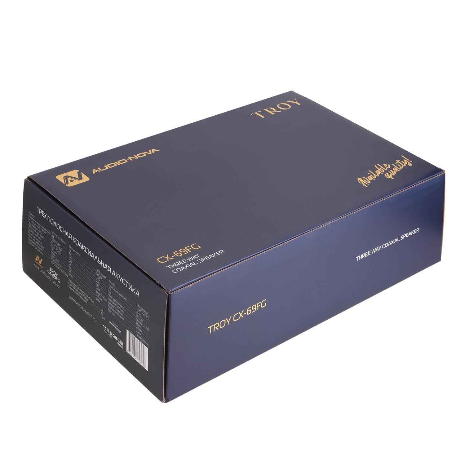 Adio Nova TROY CX-69FG представляет собой встроенный среднечастотник и твитер с шёлковым куполом 28 мм. Диаметр звуковой катушки составляет 13 мм, в динамики установлены неодимовые магниты.