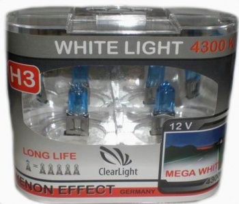 Галогеновые лампы Clearlight Лампа H3 12V-55W WhiteLight излучают яркий белый свет похожий на свет стандартных ксеноновых ламп.