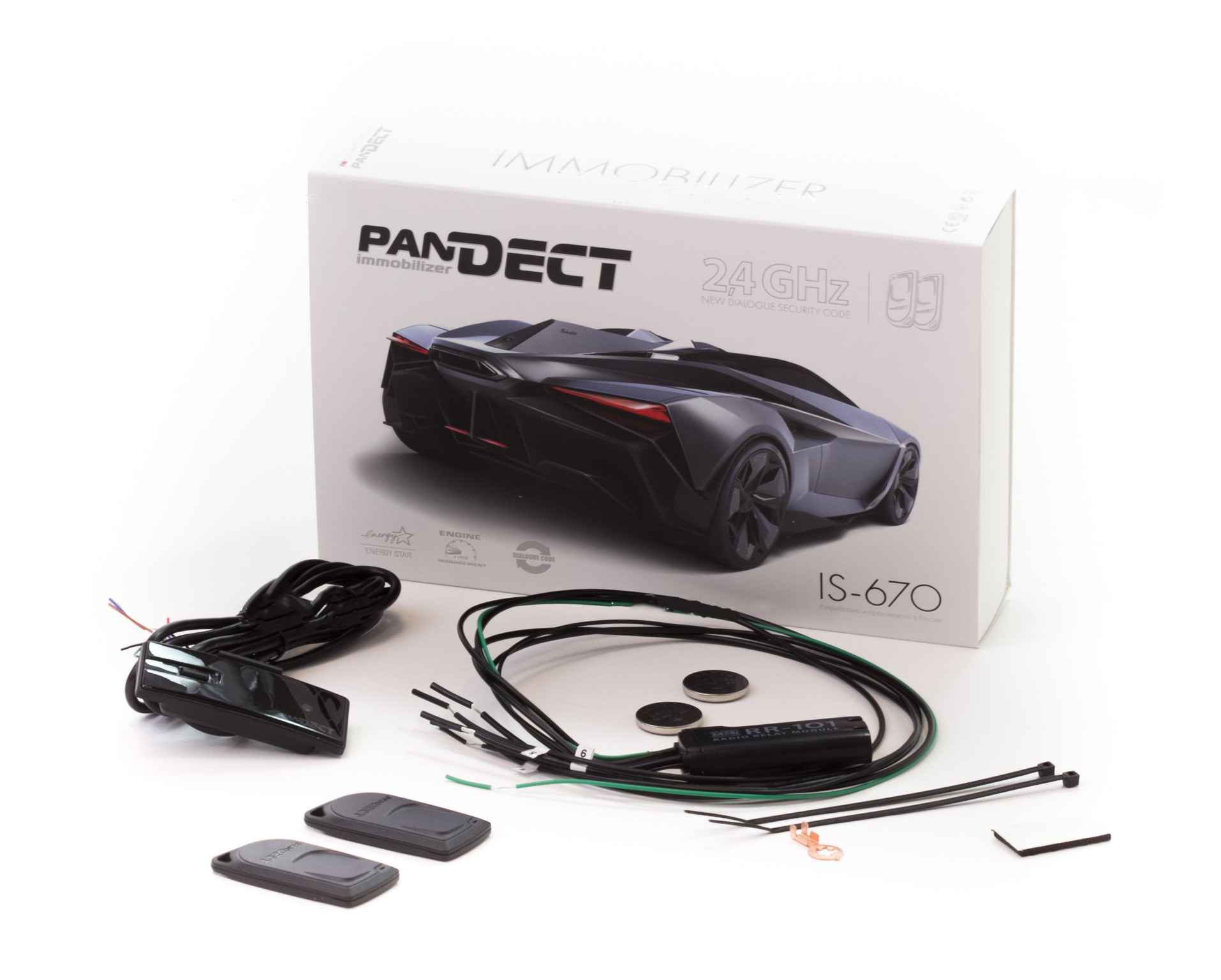 Иммобилайзер Пандект 670 представляет собой противоугонное устройство, состоящее из трех компонентов — центрального блока, реле блокировки и брелока-метки.