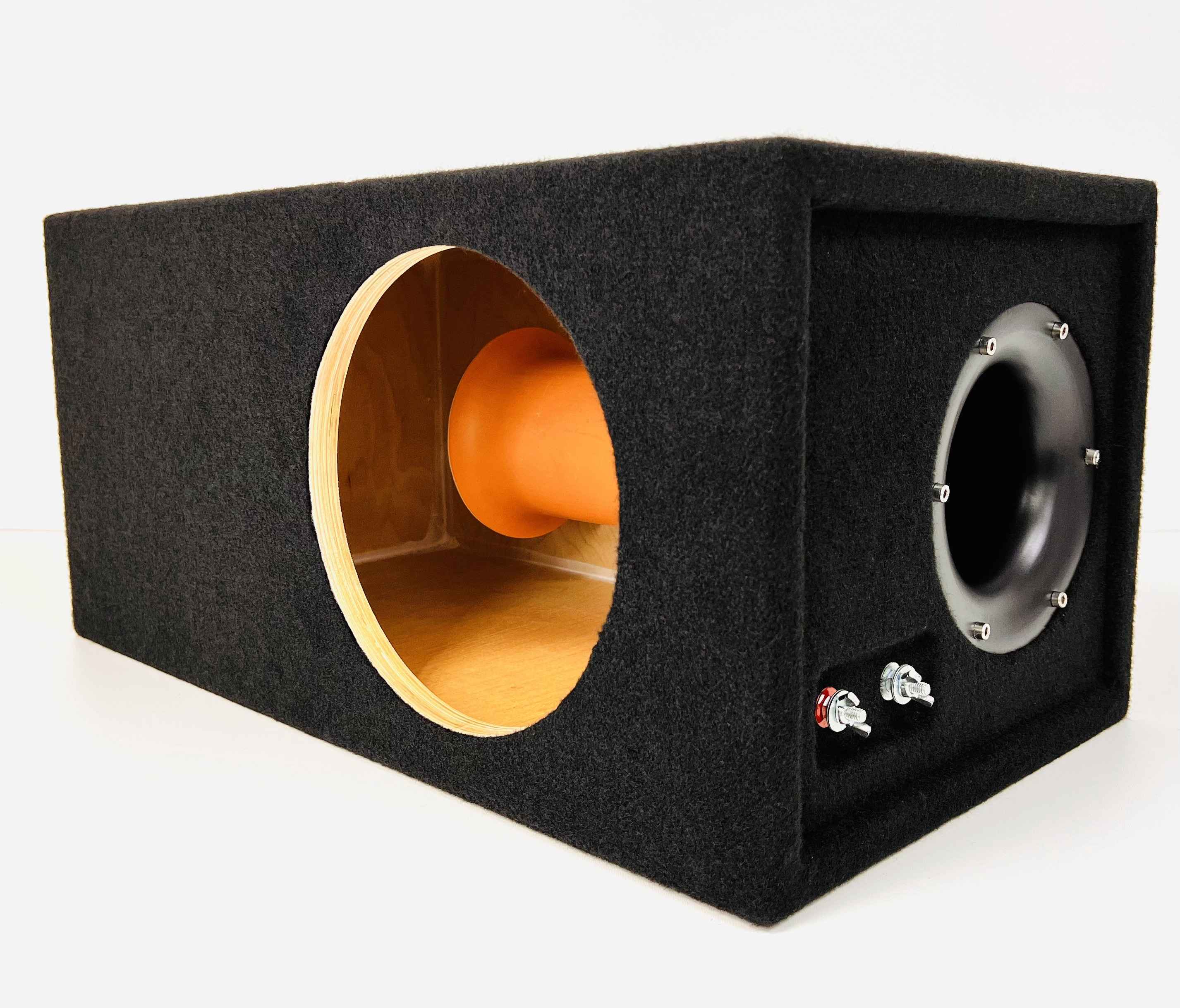 Акустический корпус для сабвуфера 25 см (10") с фазоинверторным портом на трубе 110 мм.