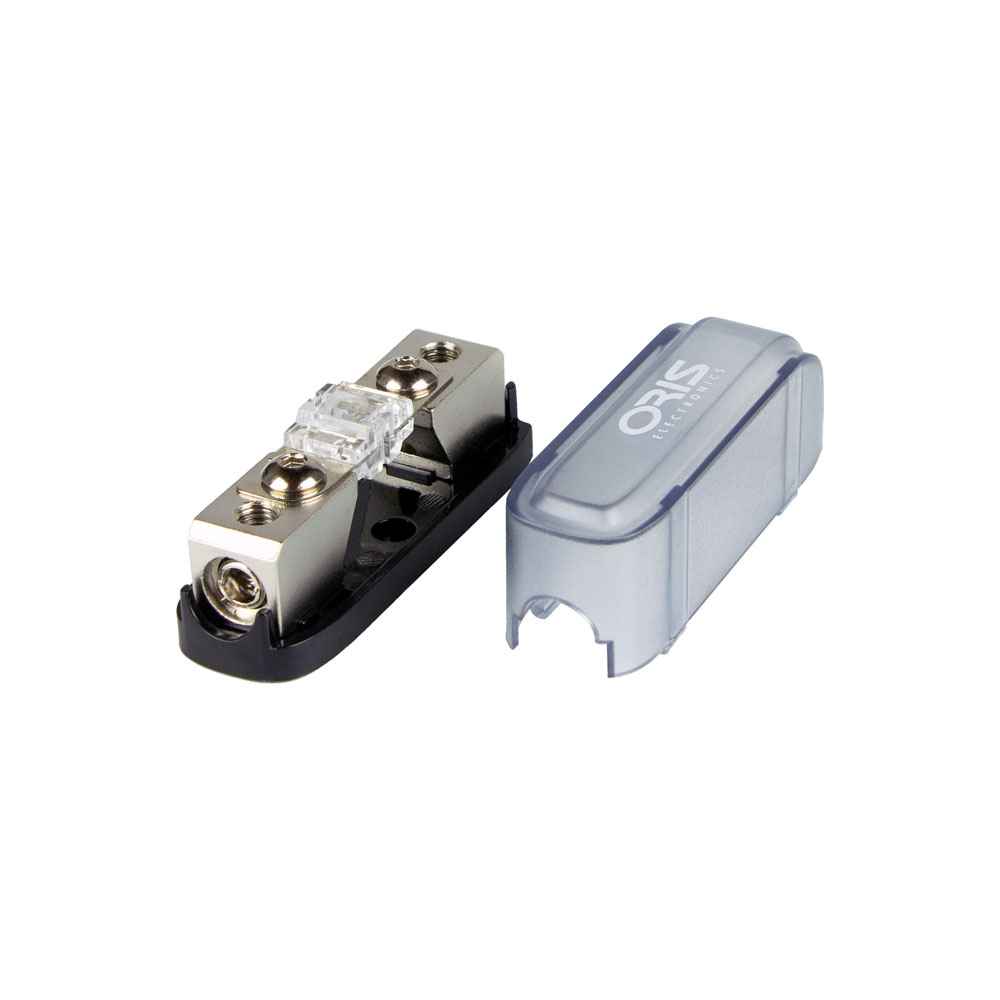 Держатель для установки предохранителя типа Mini ANL, в корпусе из термостойкого пластика, для кабелей сечением 4 - 8Ga. В комплекте предохранитель номиналом 80А и переходные втулки для кабеля сечением 8Ga