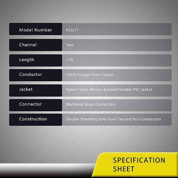 Премиальный 2-канальный межблочный RCA кабель обеспечивает кристально чистый стерео-сигнал, идущий от вашего усилителя.