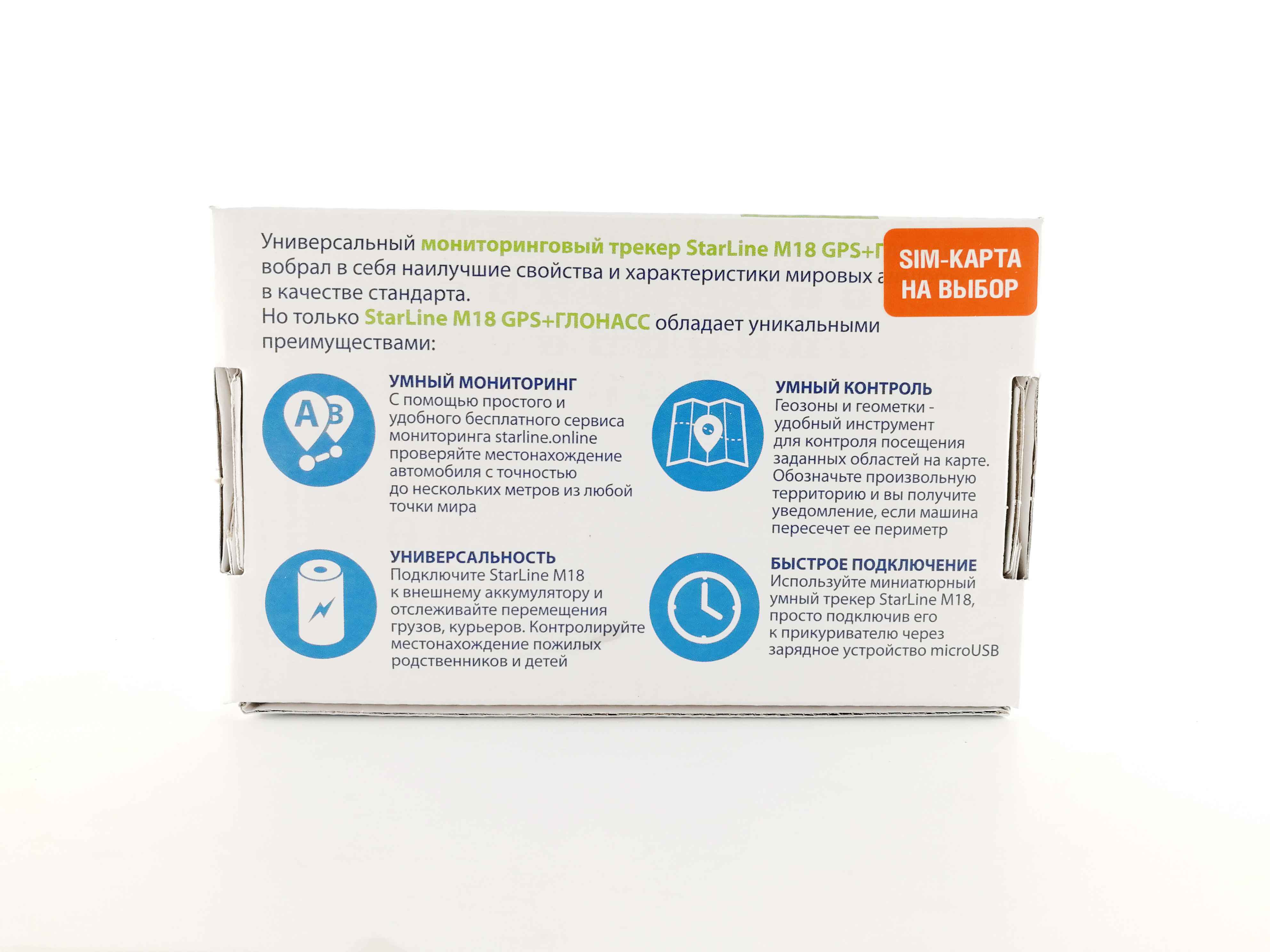 Универсальный трекер StarLine M18 Pro V2 для мониторинга транспорта с возможностью реализации дистанционной блокировки двигателя, контролем моточасов, настройкой геозон и геометок, а так же черным ящиком на случай временной потери GSM сигнала. Устройство оборудовано входом зажигания, выходом блокировки двигателя и двумя дополнительными универсальными выходами для реализации дополнительного функционала.